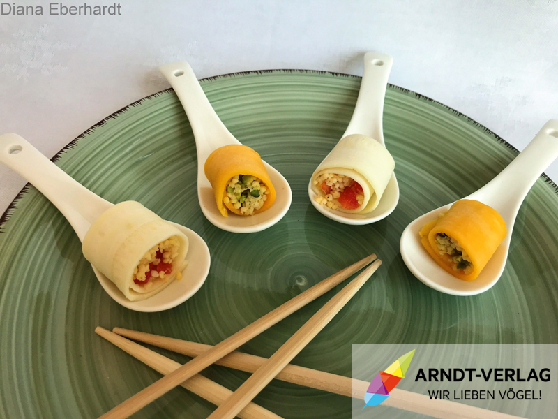 Das “Zweierlei Sushi” ist eine schnell zubereitete Mahlzeit für die Vögel sowie leckeres Fingerfood für die Halter.